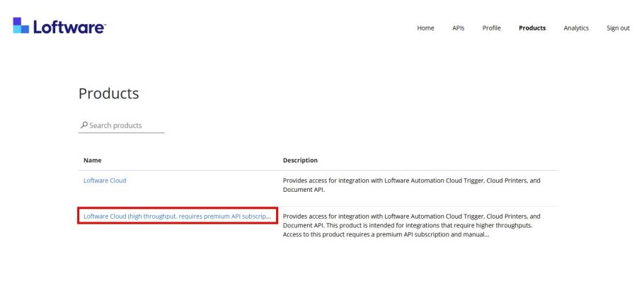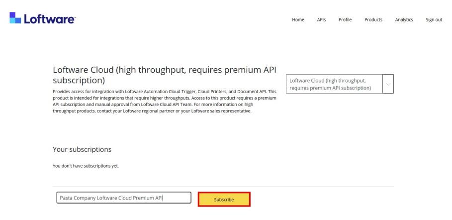 Next, you subscribe to Loftware Cloud High Throughput APIs: