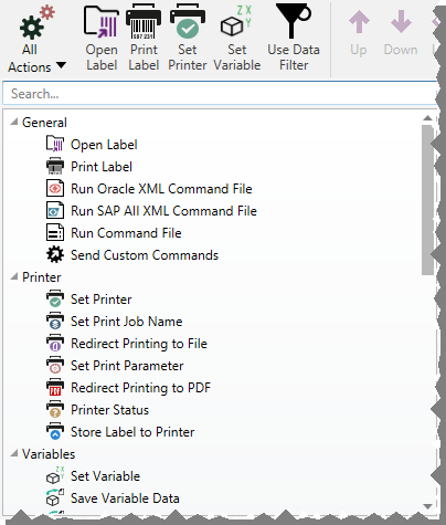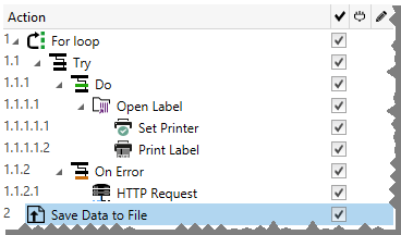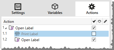 In this case, the Print Label action is still defined in the actions list, but has been disabled. Currently, it is not needed and will be ignored during the processing, but you can easily re-enable it at any time.