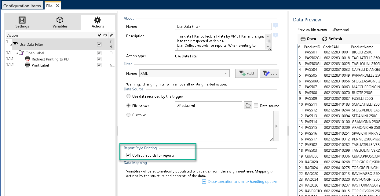 Combine your business system data with labels containing Reports. Create reports in Loftware Designer and fill your reports with data from your business systems in Loftware Automation.