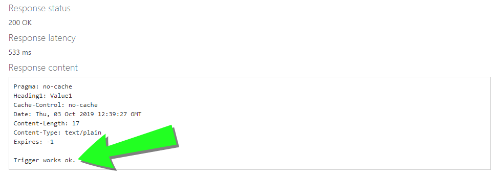 Define the Response data. This is what you receive if the trigger works. Let's use the following string: "Trigger works ok."