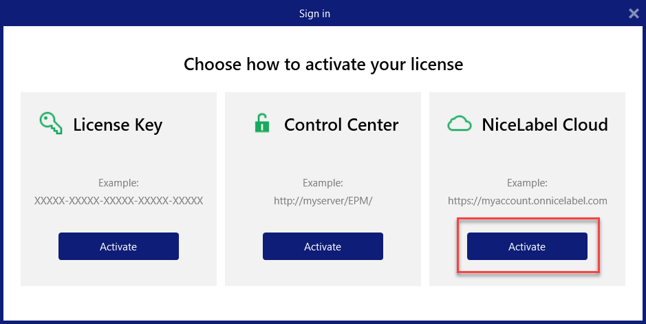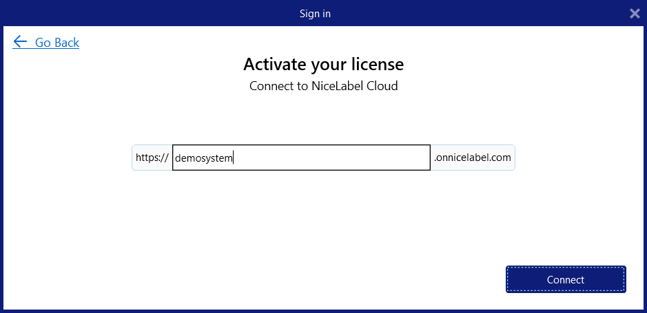 Click Connect under “Connect to Loftware Cloud” to begin activation.
