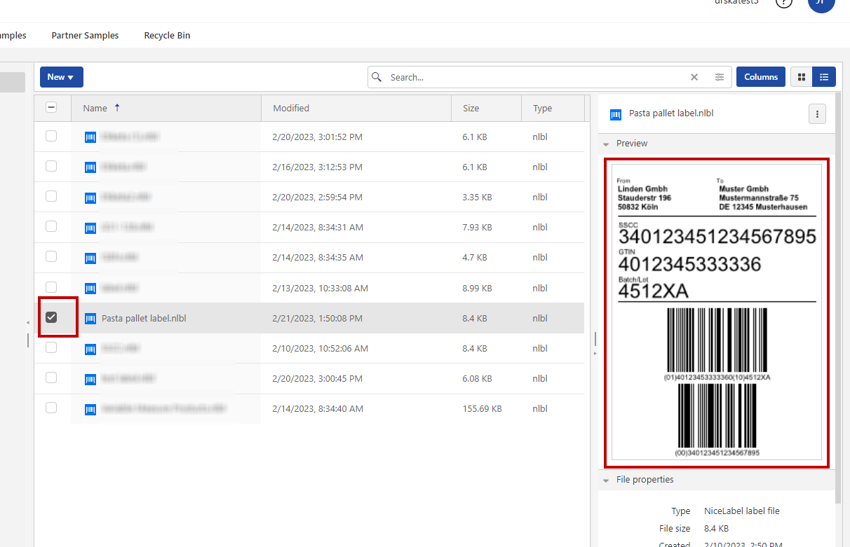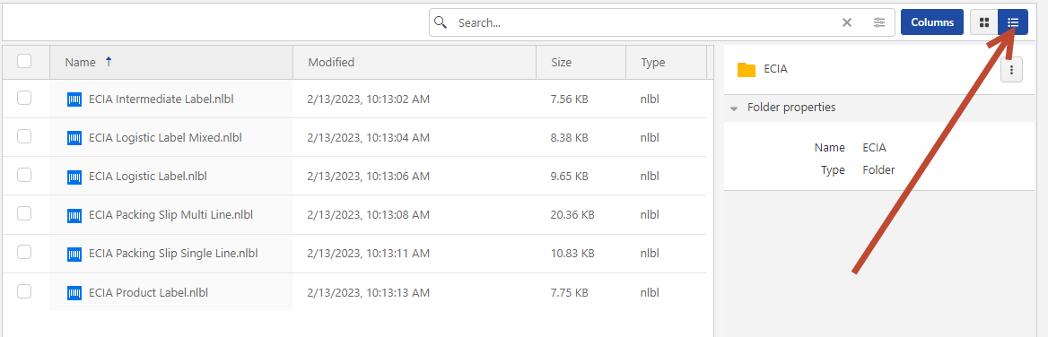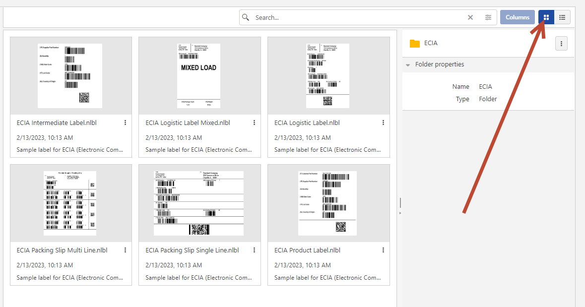 With .nlbl files, the thumbnail view shows label previews. With other types of files, you can see only file icons.