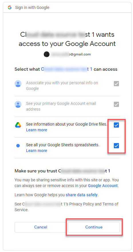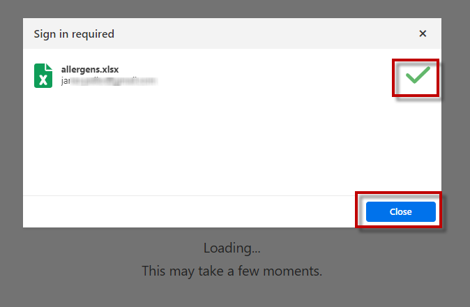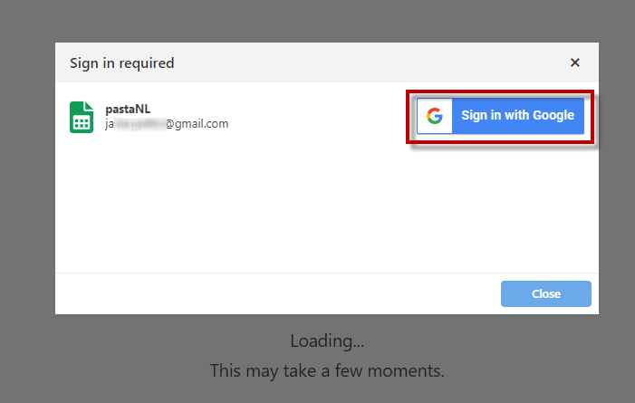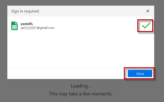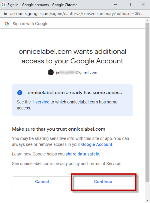 If you previously made connections to some other Google Sheets or you printed from another browser, the following window opens: