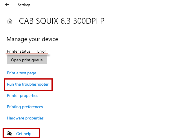 If the test print failed, run Windows diagnostics by clicking