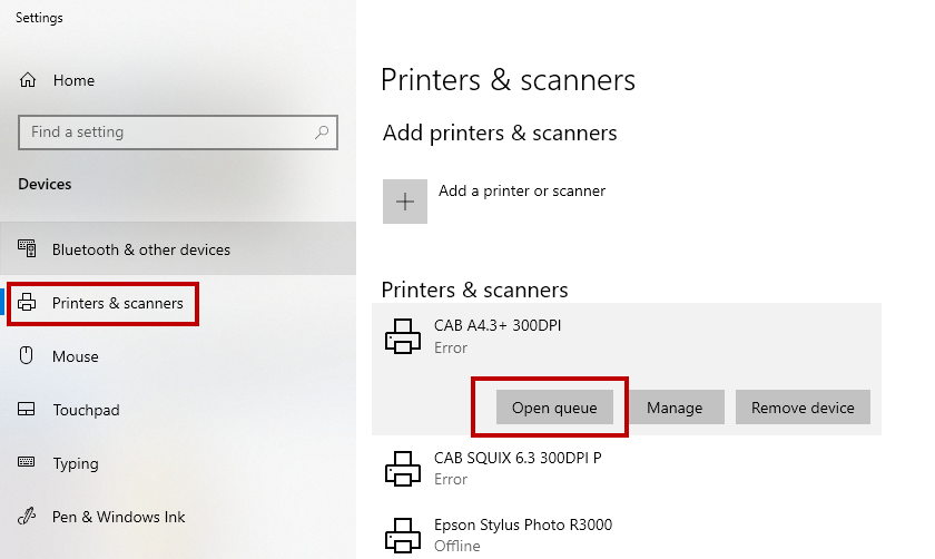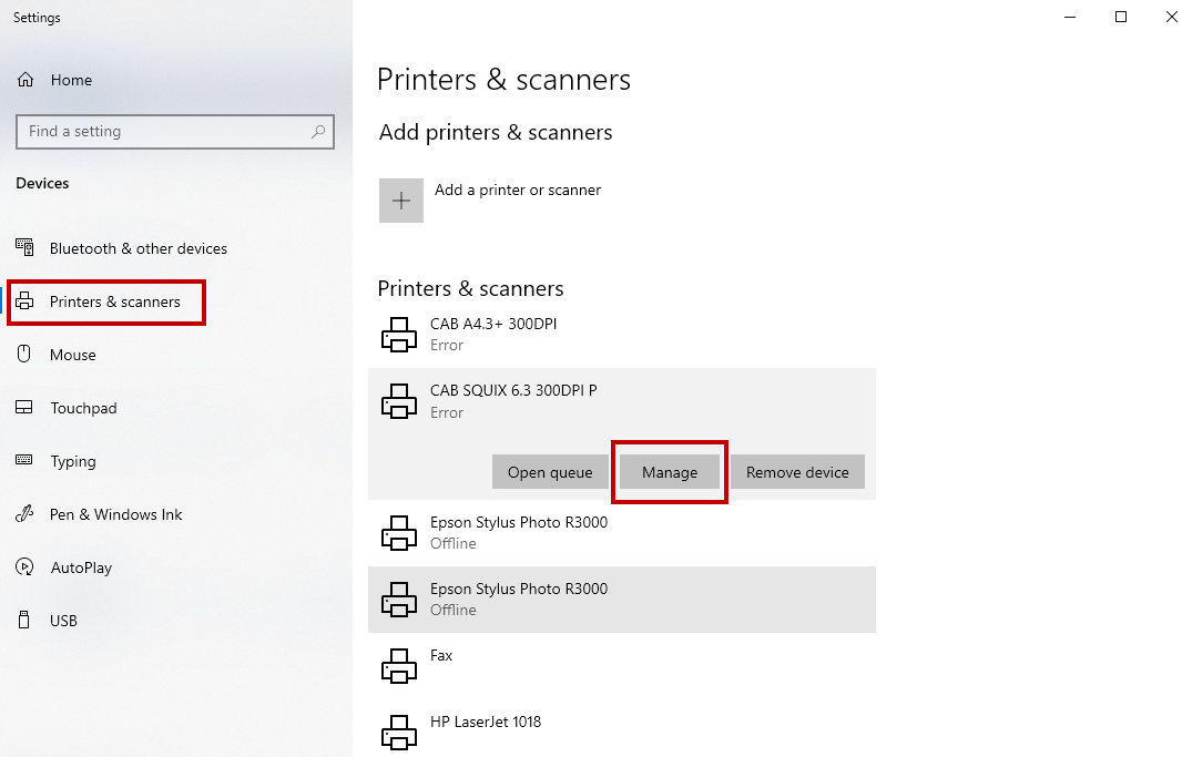 Settings >Devices >Printers & Scanners and click your printer.Click the