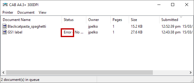 Open queue button. The printer spooler window opens.