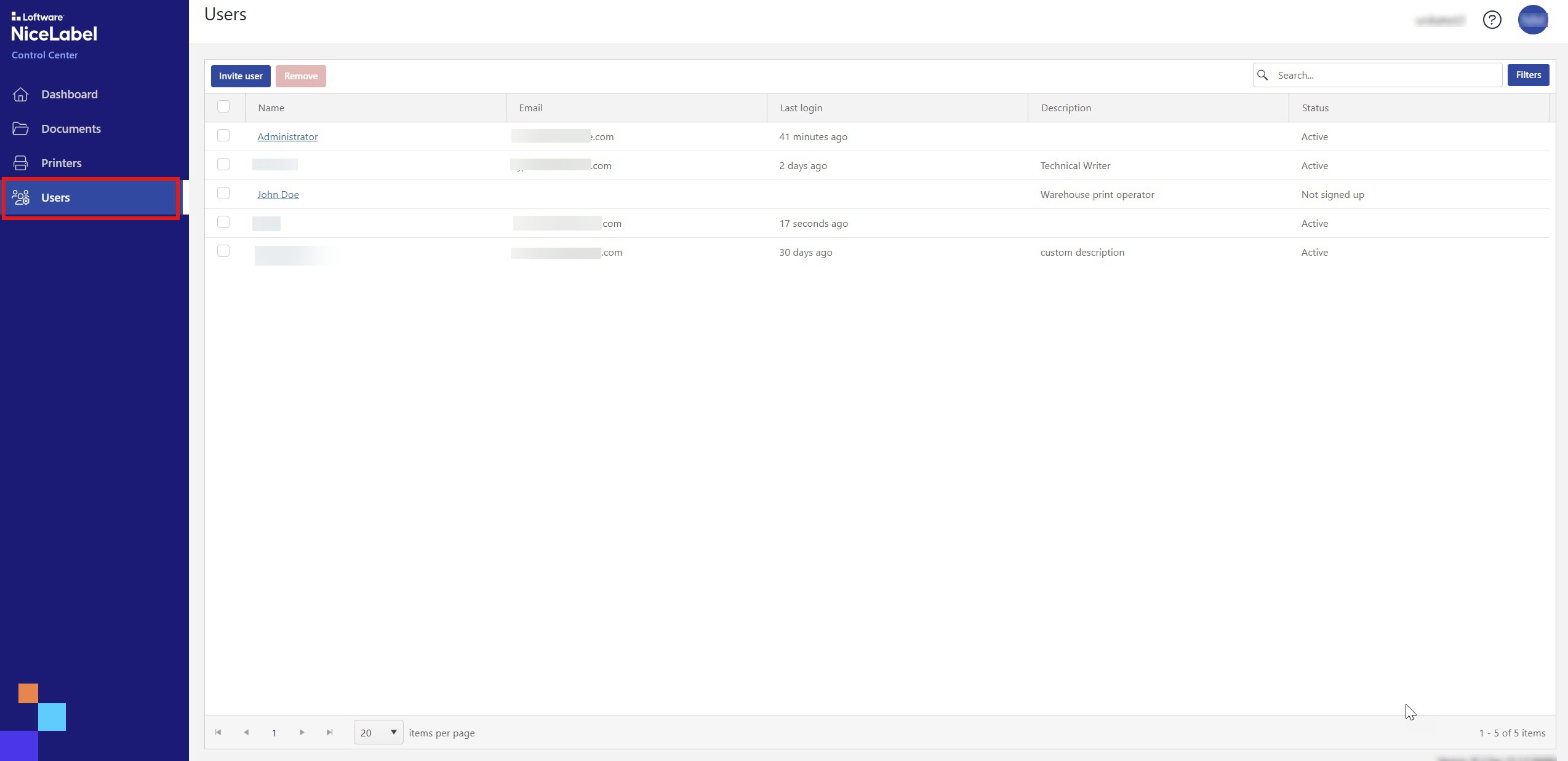 To enable user access management, upgrade to a higher version of Loftware Cloud. To find out more, contact your Loftware partner or Loftware sales.