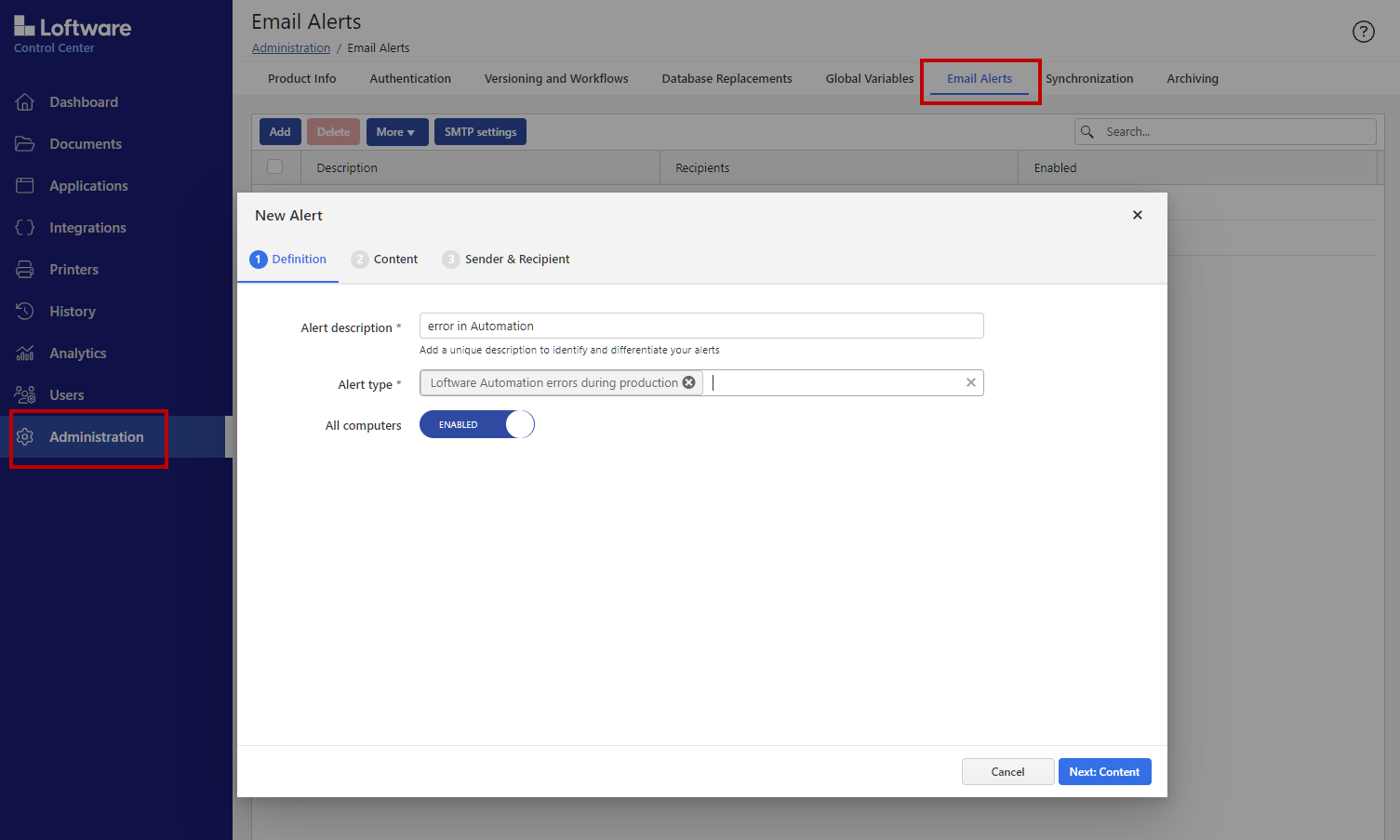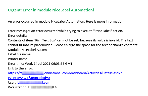 If there are multiple identical label printing errors, Control Center doesn't send alerts for each of these errors. In case of repeating printing errors, you receive a new alert every 15 minutes.