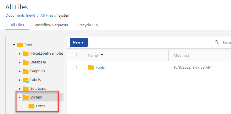 If you use custom fonts for labeling, you can upload and store your fonts in Control Center