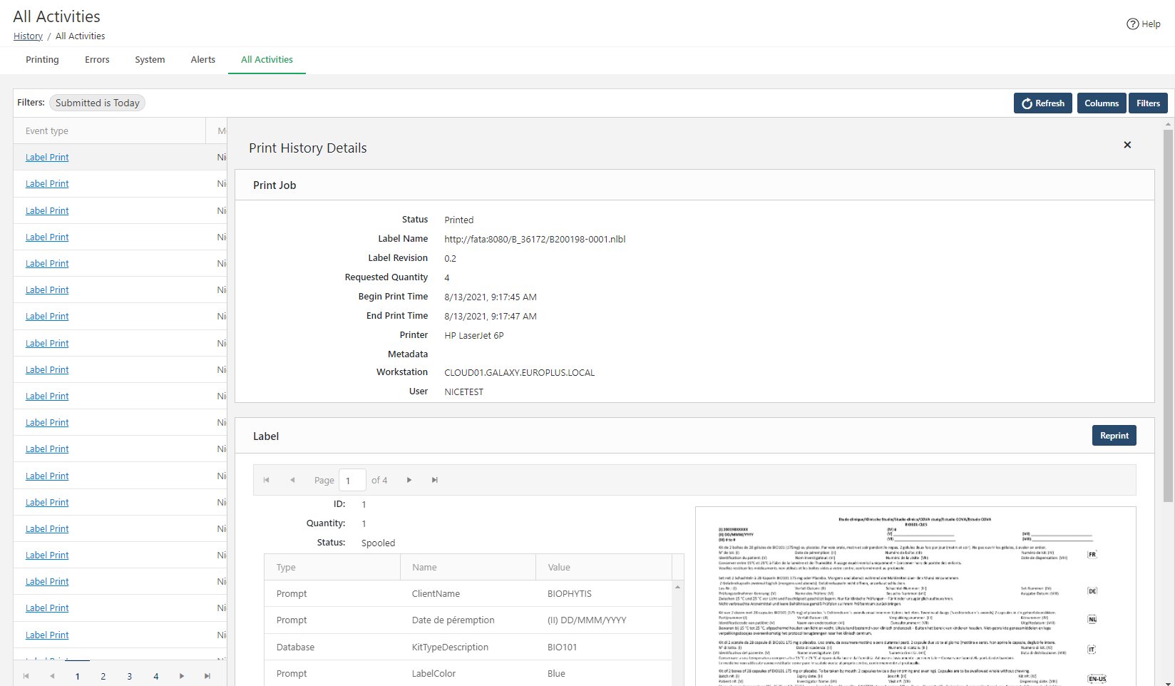 In All Activities you can add your own log records with customized information and details about your printed labels or errors.