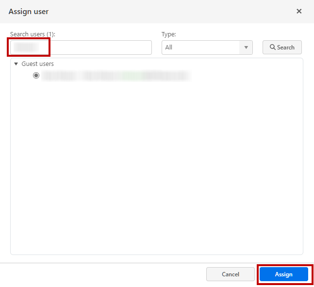 Search for the user you want to assign to the virtual machine, then click Assign.