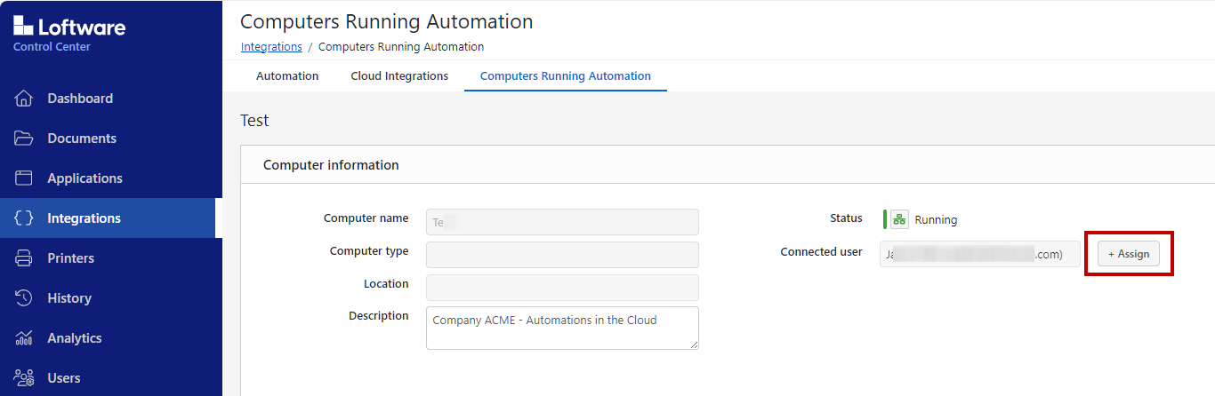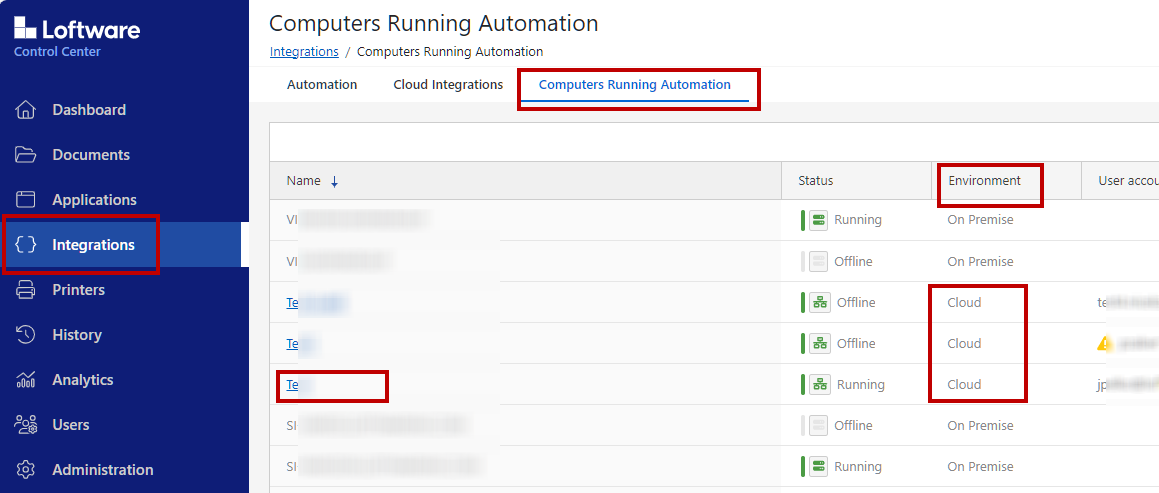 - In Control Center go to Integrations > Computers Running Automation. A page with all connected local computers and virtual machines opens.