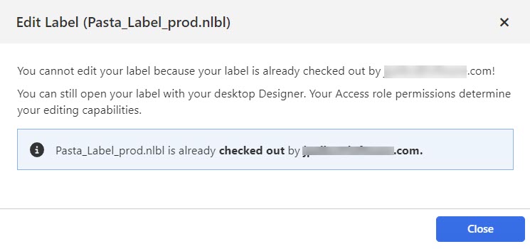 In Web Designer, only one user can edit a label at a time. Other users see the label as locked.