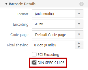 Enabling DIN SPEC 91406 in Barcode Properties