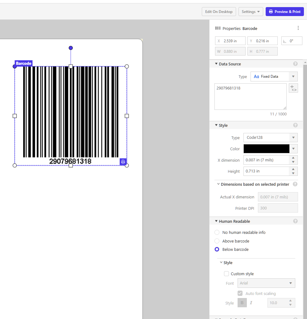 Barcode Properties