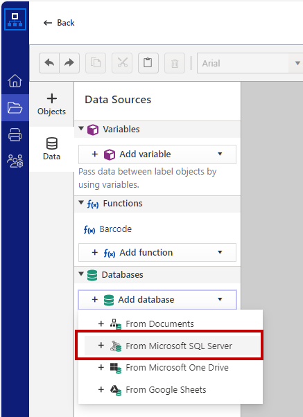 Connect your database to your label design to avoid manually typing your content and minimize user errors.