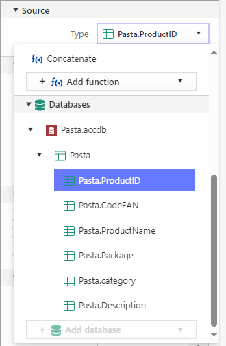 Source section, select your database field.