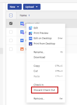 When you select Discard Check Out, all changes are discarded since the last Publish action. This can cause the loss of the latest editing from another user.