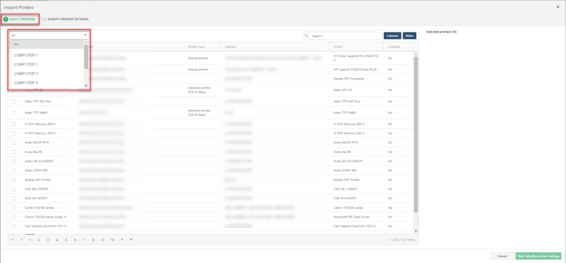 Select Printers , from the dropdown menu, choose your computer to see printers from that computer. UseFilters (on your right) to narrow your selection and find printers to add.