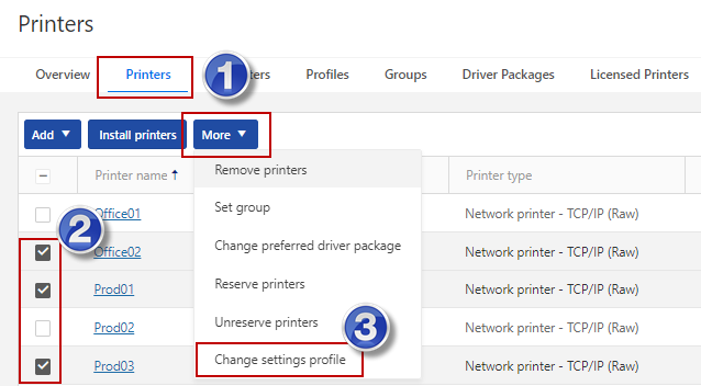 Printers >Printers .Select printers you want to add or change profiles.