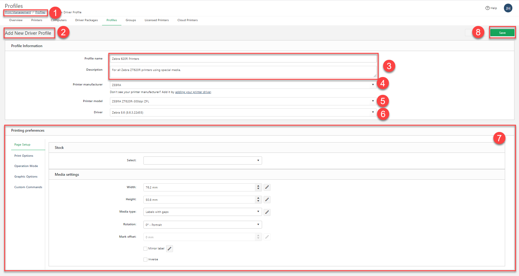 A driver profile is a set of printing preferences linked to a specific printer driver. Putting printing preferences in profiles allows many printers to share the same set of printing preferences without the need for duplication.