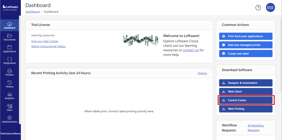 Go to your cloud Control Center > Dashboard. From the Download Software section, click Control Center.