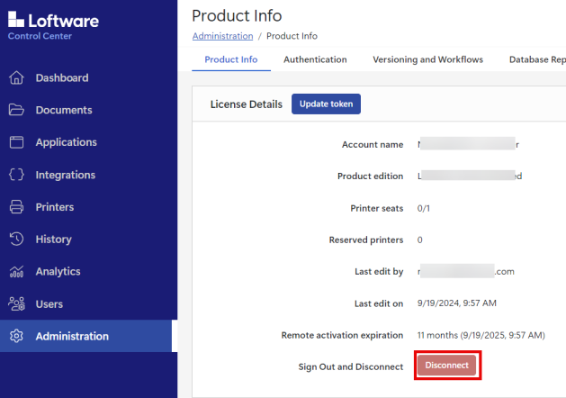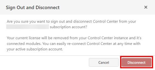 Important! When you click Disconnect, you deactivate Control Center from your account, but the deactivation is not yet complete. Your printer seats are still reserved until you finish the procedure, or until your remote activation expires. -