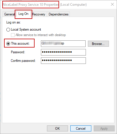 NiceLabel Proxy Service 10 on client computers runs under an account with administrative privileges. Don't useLocal System account .Apply this step to all users that print to shared printers.