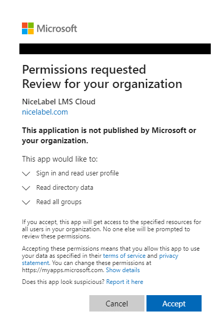 After your invited users click on the link, they sign in to your Loftware Cloud Control Center using their organizational Microsoft account..