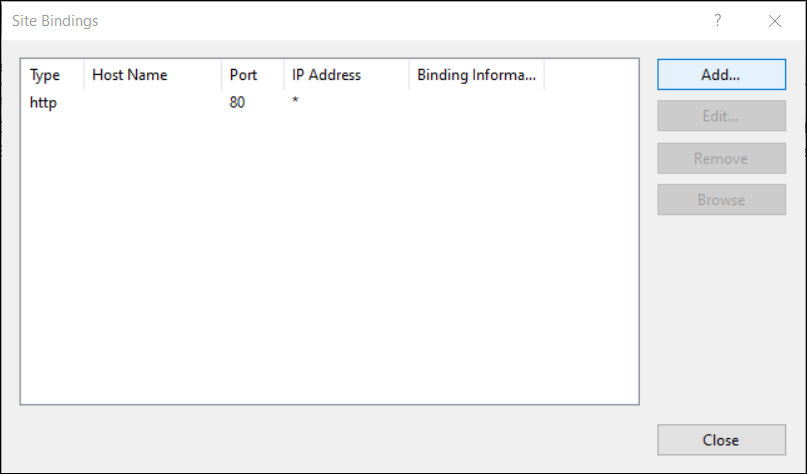 Site Bindings dialog opens. Click Add.
