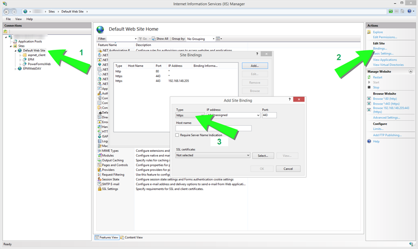 Adding HTTPS site binding and SSL certificate in IIS
