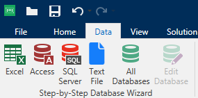 Option 1: Click the preferred database button in Desktop Designer Data tab ribbon > Step-by-step Database Wizard group.