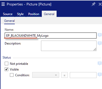 You can force your images to monochromatic printing on label printers with on-color ribbon. You can enable this functionality by adding the EP_BLACKANDWHITE_ prefix to the Picture object