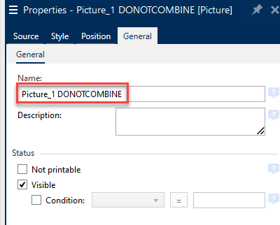 To exclude any label objects from combination, your object name or the name of the data source connected to your objects must include "DONOTCOMBINE":