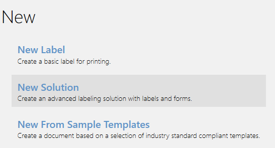 To create a Desktop Designer solution means to create a complete labeling "kit" which includes labels and forms.