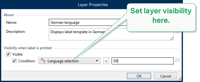 The Visibility settings allow you to define if objects on layers are visible when you print the label