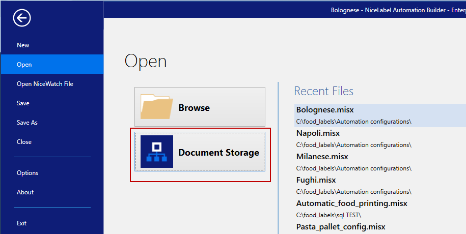 Open dialog allows you to open existing label and solution files, or existing configurations in Automation Builder.