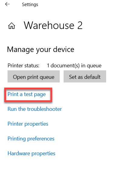 Test printing from your printer driver