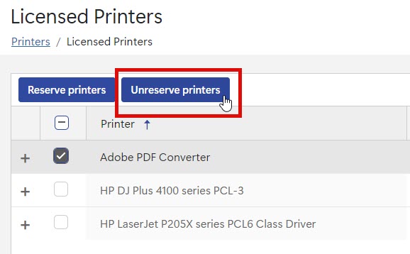 Unreserve printers button.