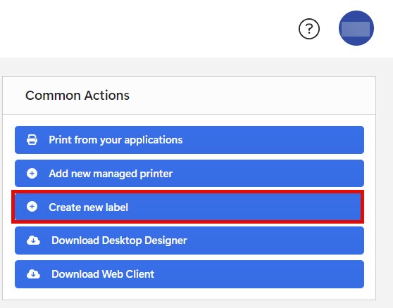 If you do not see the Create new label button, you do not have the right Access Role. For more information, see Printing from Web Designer.