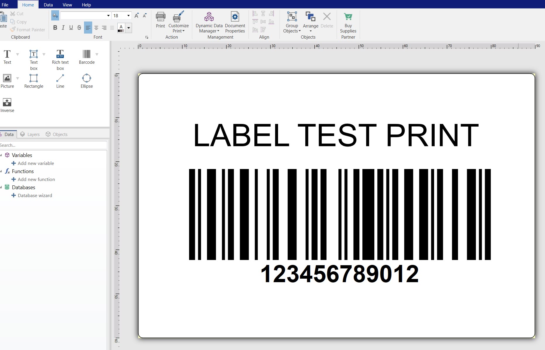 3. Click Print. Your test label prints.