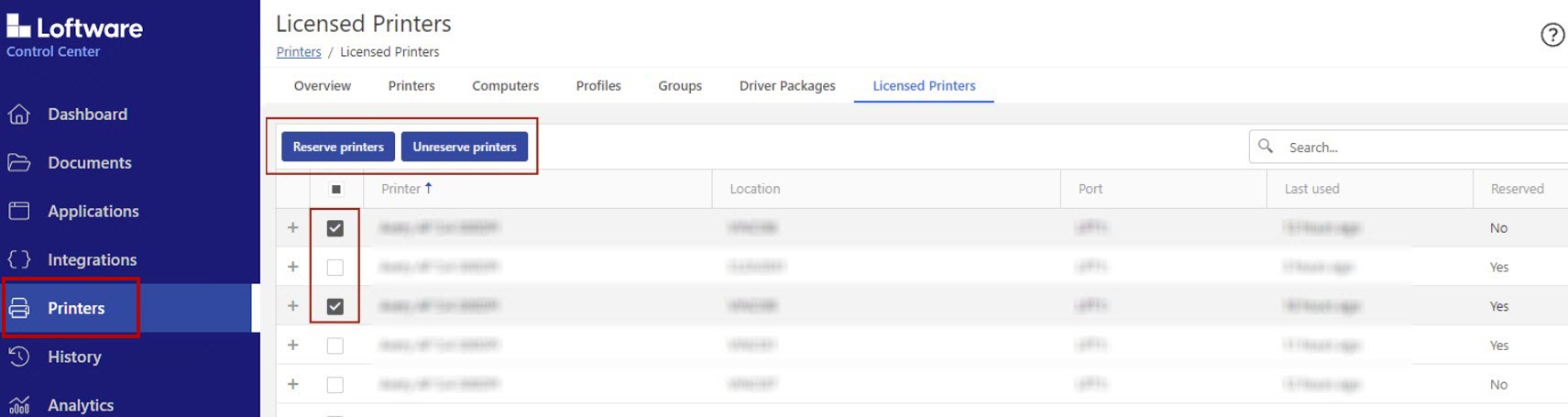Reserve printers orUnreserve printers button.