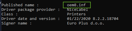 pnputil.exe -eA list of all INF files for installed drivers appears. The files are listed as