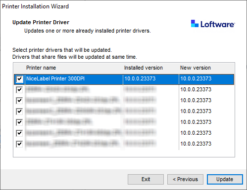 If you installed several drivers from the same printer driver distribution, the drivers for all these printers will be updated if you update just one driver.