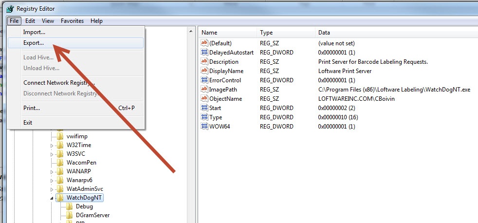 Once the Registry Editor box opens, click File export, and save the file somewhere you will remember, so you have a backup.