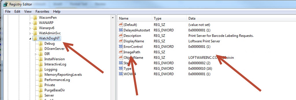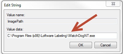 Once in this location find the Entry called ImagePath. At this point you will probably see one of two things; a blank entry, and/or an entry that does not match the install path of the WatchDogNT.exe
